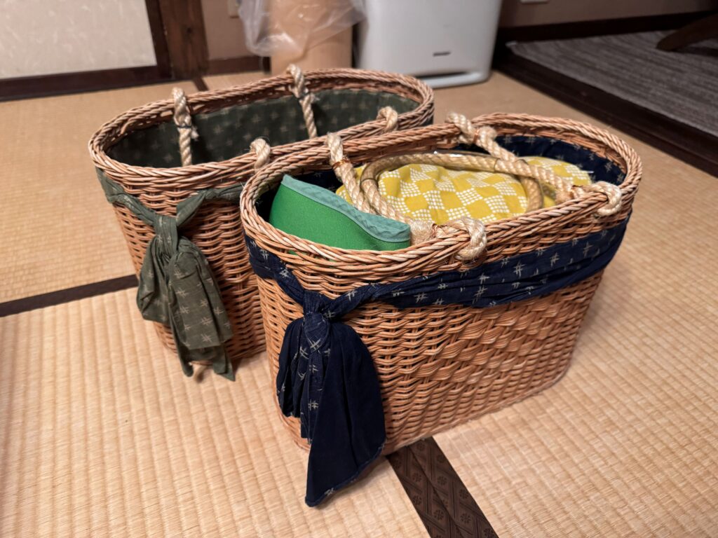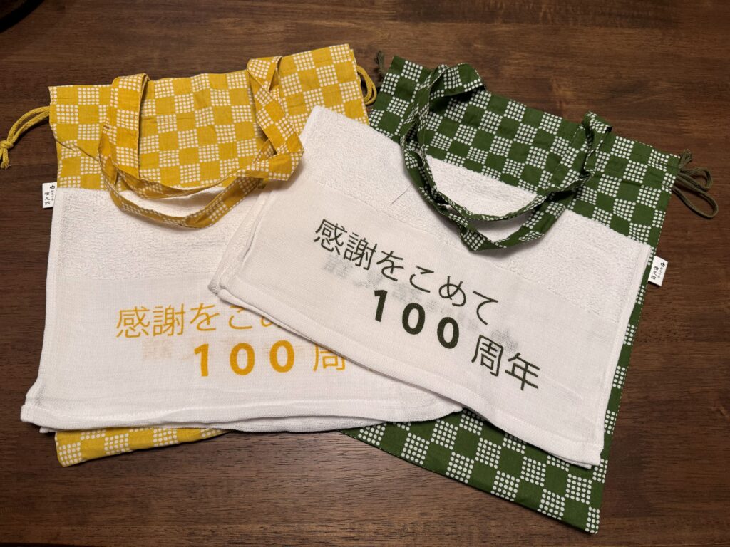 タオルを入れる袋は、外側は布、内側はシャカシャカのビニール袋で出来ている仕様で特別感がある!うれしい