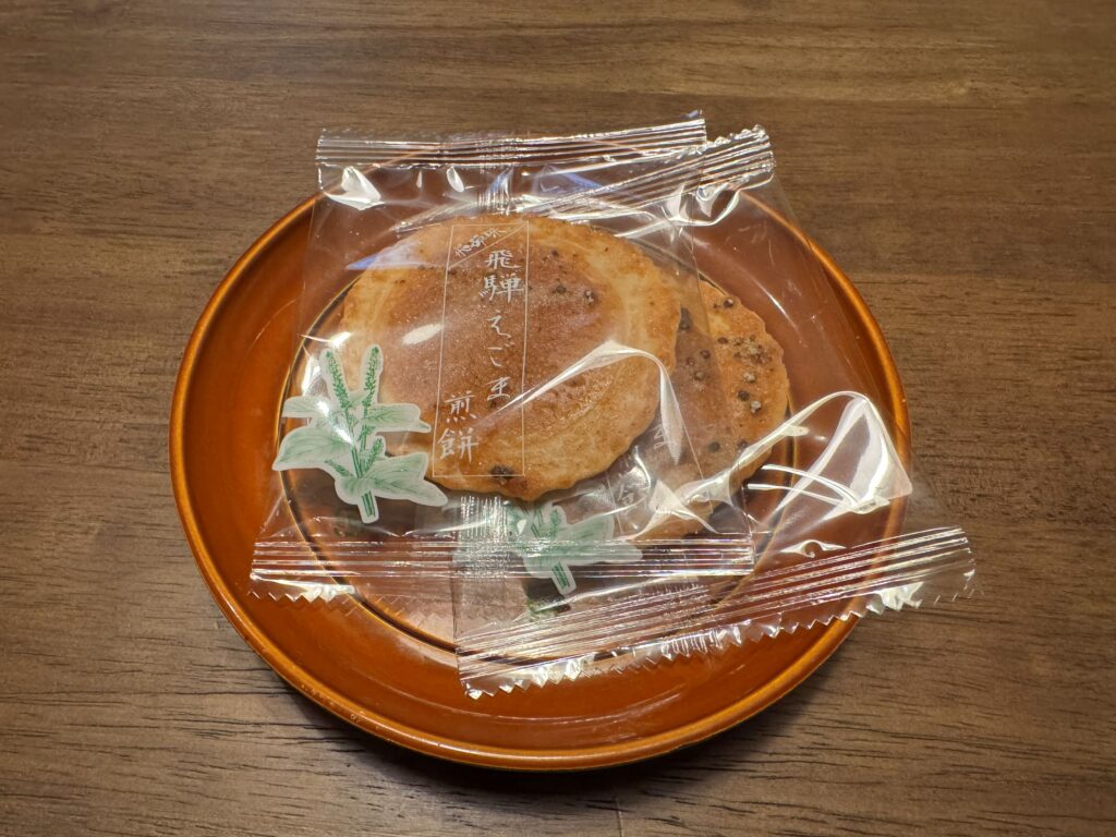 まずはお着き菓子の「飛騨えごま煎餅」で一服