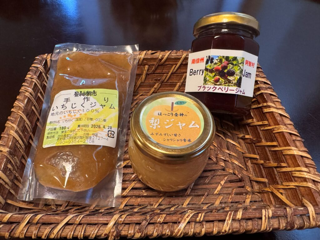 ①ジャム類(左からイチジク、梨、ブラックベリー)