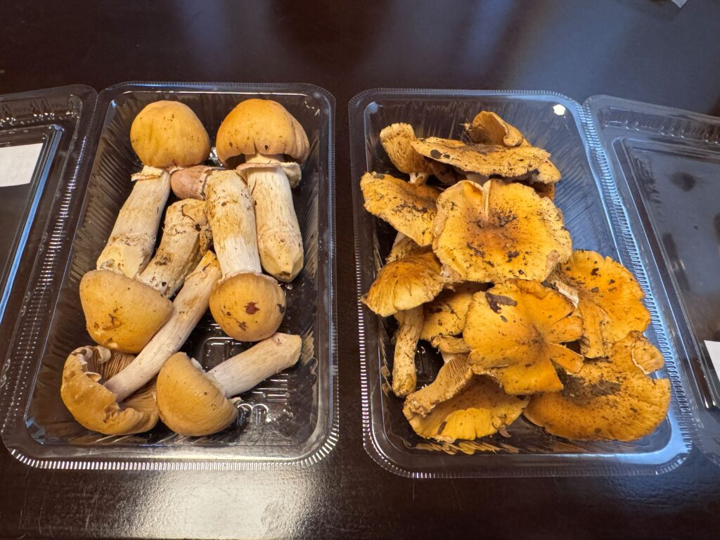 ③きのこ(左がショウゲンジ、右がクリフウセンタケ)